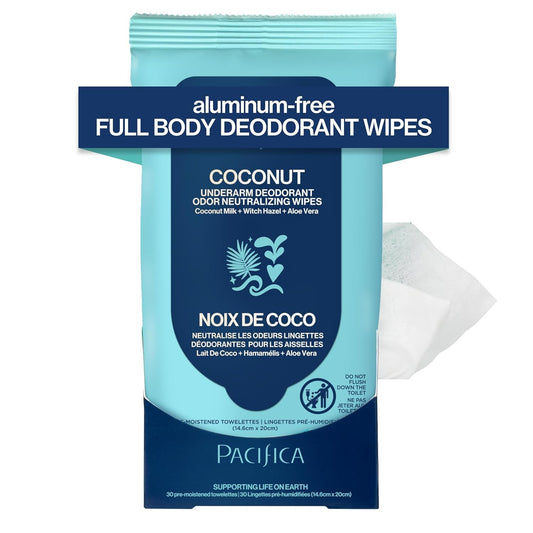 Pacifica Beauty Coconut Milk & Essential Oils Underarm Deodorant Wipes, Helps Re