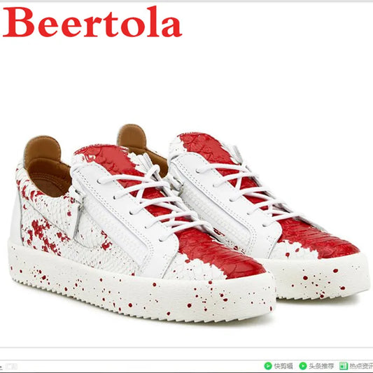 New Men'S Sneakers Snakeskin Pattern Mixed Color Casual Shoes Men Designers Red Dots White Flats Shoes Male Lace up Chaussures